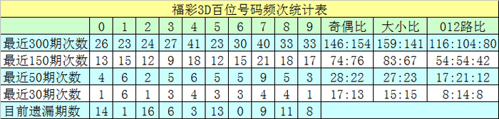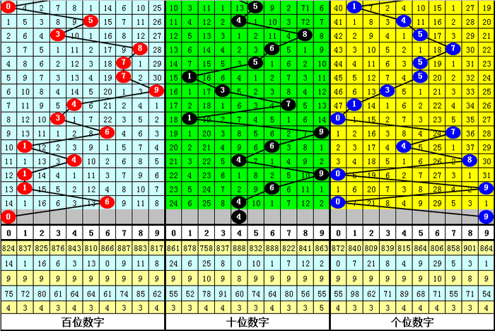 百位分析:最近50期发扬较热的号码有:7出现9次,1、4出现6次;发扬较冷的号码有:2出现2次,9出现3次,0出现4次。出号奇偶比为28:22,012路比为17:21:12。本期该位绝杀两码2、9,参考号码0、3、5,精选一码0。